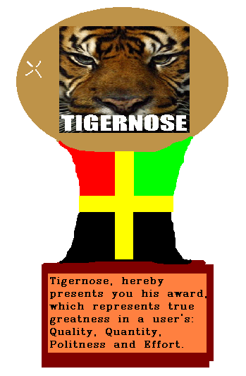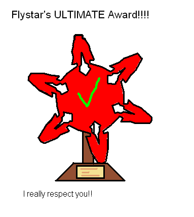 I will give you my ultimate award, but I have to tell you something secret. My real name is -CLASSIFIED-. Do NOT tell anybody else!--Flystar All Hail the Webmasters! 01:05, 23 January 2009 (UTC)